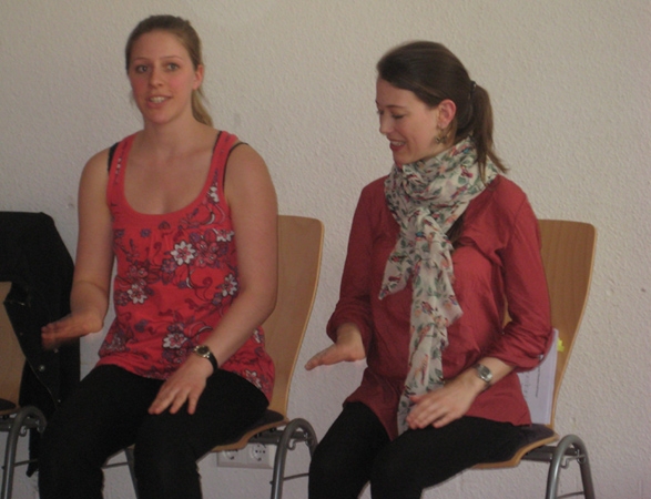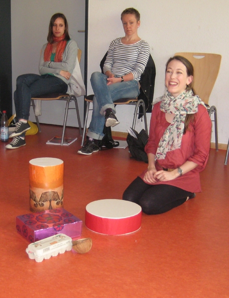 Die Erzieher/innen waren von diesen Kursen so begeistert, dass sie einen Fortbildungskurs wünschten, um auch selbst im Alltag Ideen, Techniken und praktische Übungen der EMP durchführen zu können. Im April 2013 haben sie zwei Nachmittage lang mit den Referentinnen folgende Themen bearbeitet: Musik und Bewegung erleben – Stimmbildung und Singen mit Kindern – Kennenlernen / Einsatz von Elementarem Instrumentarium, z.B. Orff-Instrumente oder selbst gebaute. Achtzehn Erzieherinnen nahmen an dem Kurs teil und haben sich noch weitere zwei Nachmittage zur Vertiefung gewünscht. Jetzt sind die Kurse zur Tradition geworden!