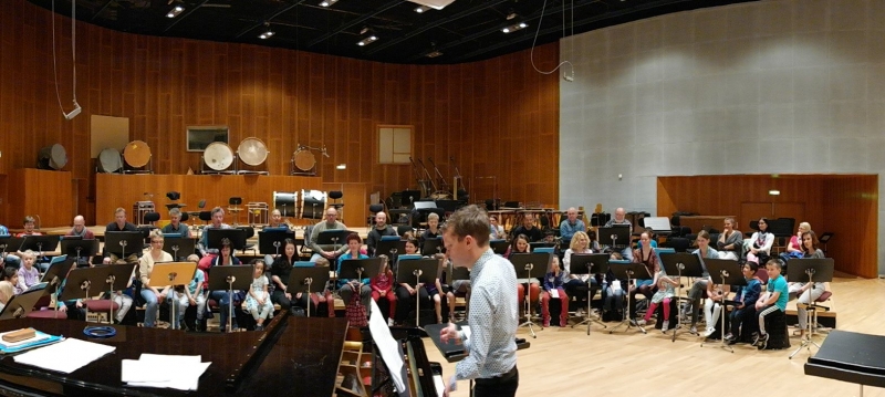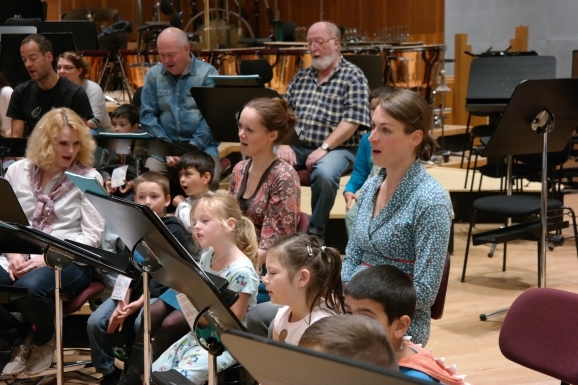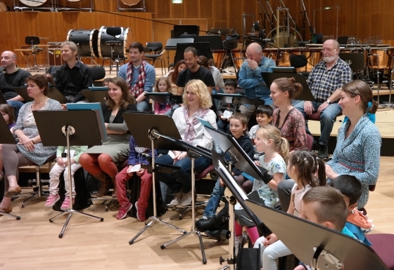 Probenbesuch beim VE: Über fünfzig Kinder aus verschiedenen Kitas durften wieder bei einer Probe zwischen den SängerInnen sitzen und sogar mitsingen – Frühlingslieder und Kanons. Dann horchten sie noch gespannt der Probe von Gospels für ein Konzert am Kirchentag zu.