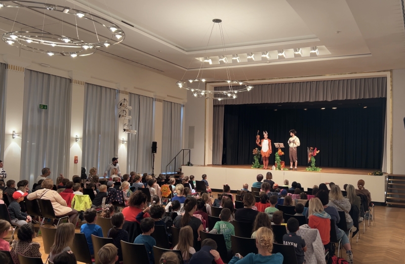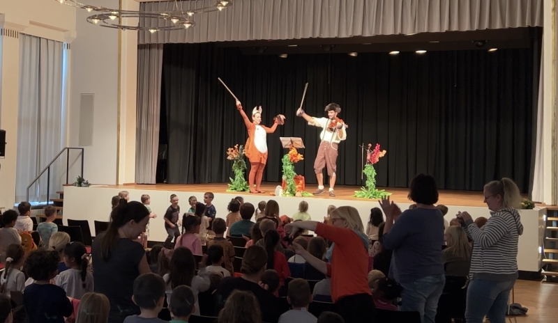 Am 12. Oktober 2023 hat das Geschwister-Duo für unsere Kita-Kinder im Kursaal in Bad Cannstatt diese Geschichte aufgeführt – witzig verkleidet und pfiffig musiziert. Die 250 Kinder haben begeistert mitgemacht: im Saal eine Bombenstimmung, sie haben rhythmisch geklatscht und zum Schluss durch tosenden Beifall eine Zugabe gefordert.
